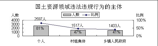 关于所在地区国土资源领域违法违规行为的主体(多选题),2597人(约占81%)选择“个人”;1517人(约占47%)选择“村组集体”;1403人(约占41%)选择“乡镇人民政府”。